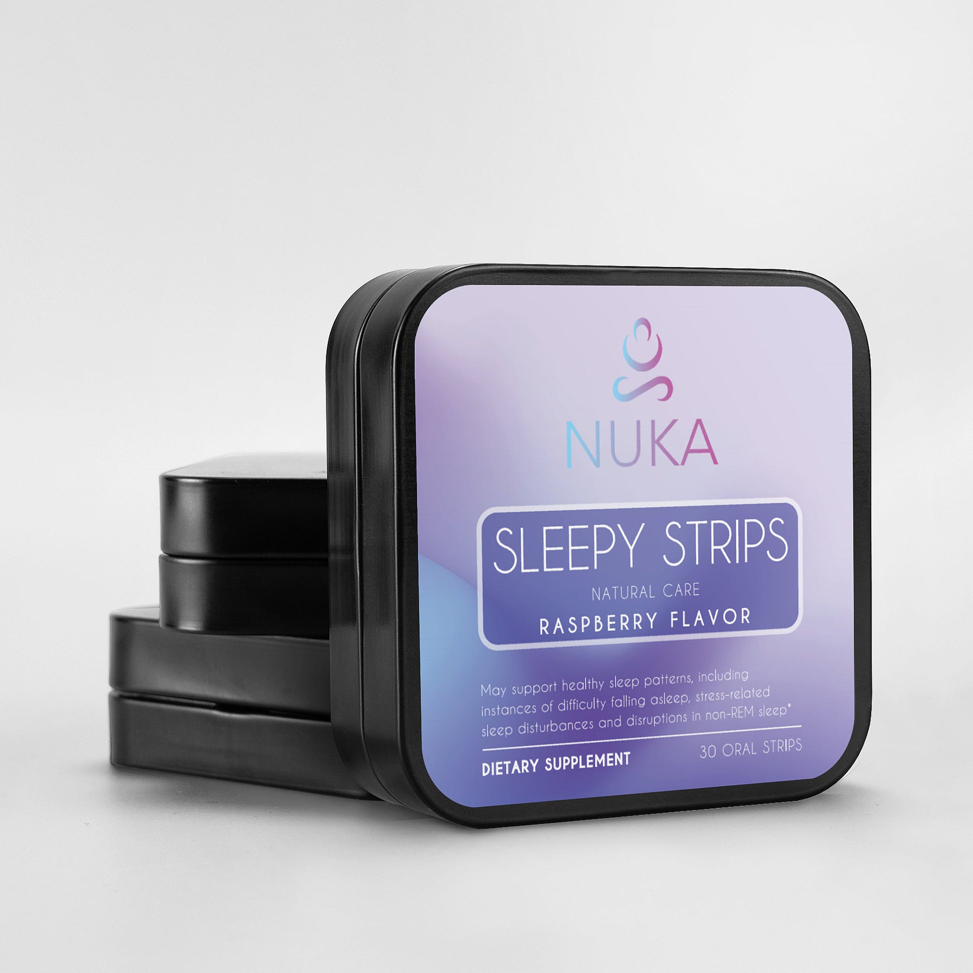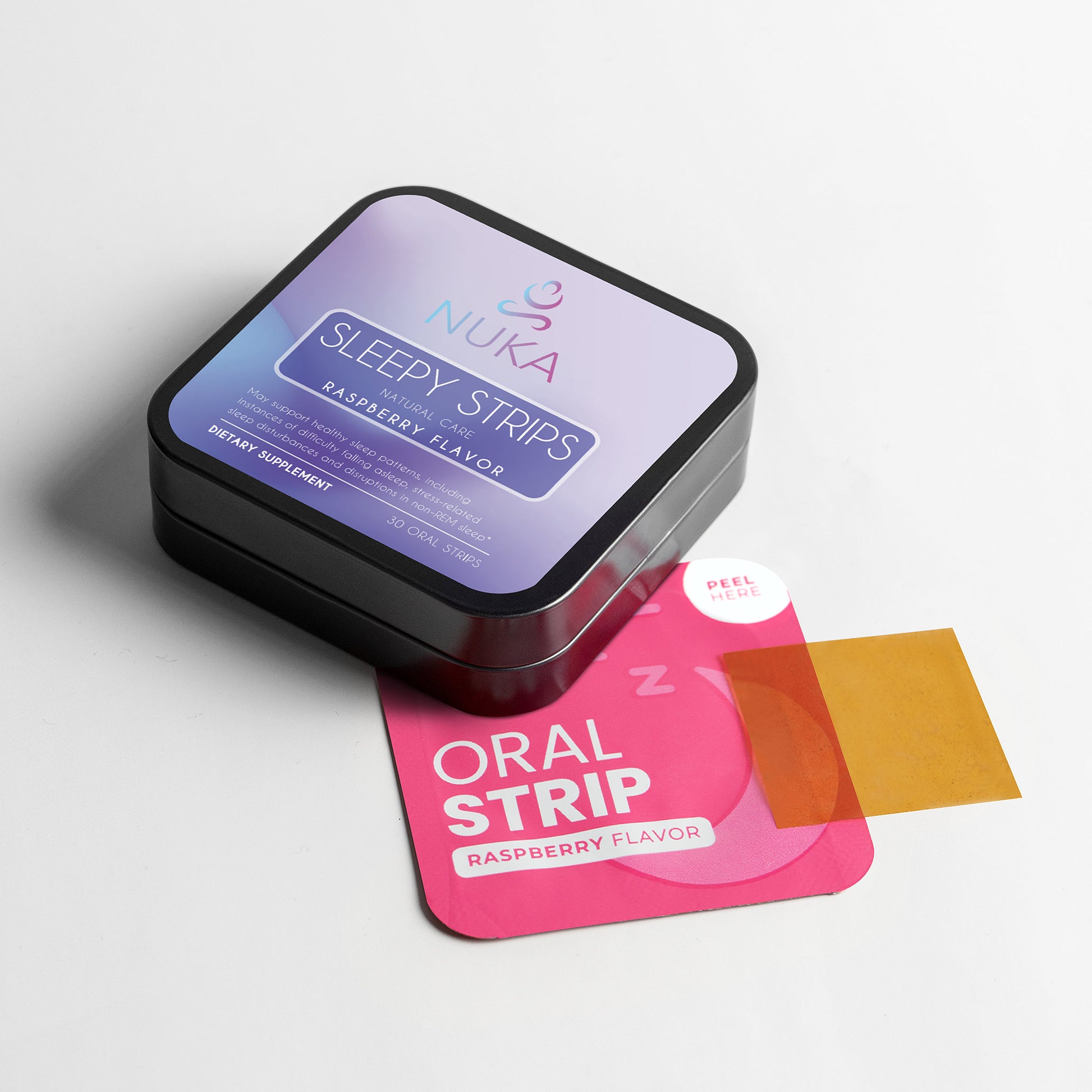 Sleepy Strips. These fast-dissolving oral strips are packed with a calming herbal blend and just the right touch of Melatonin to help you drift off naturally—without pills, water, or waiting.